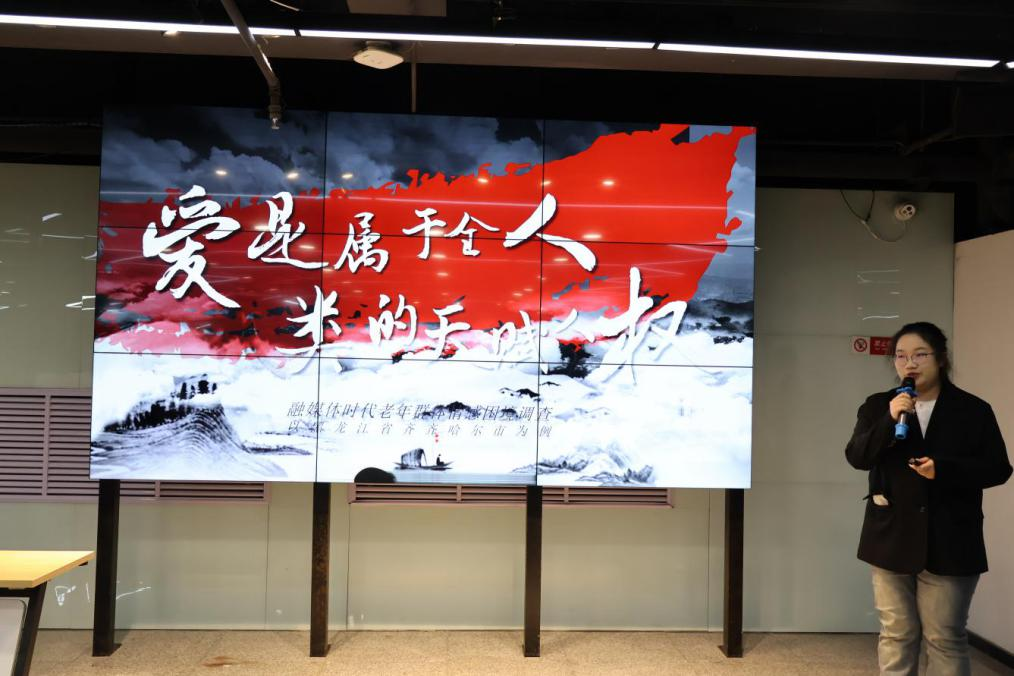 丛祺、汪姝含、付越小组深入社区和养老院,与老年人面对面交流,耐心倾听他们的困惑和期待。面对智能手机、电脑等智能设备,老人们普遍表现出陌生和畏惧。然而,在调研中,他们也看到了希望的火花。有些老人开始尝试学习使用智能手机,眼中闪烁着对新知识的渴望;有些子女主动教父母使用数字设备,用数字反哺的方式传递着亲情与关爱。朱禹潼在齐齐哈尔市的社区和家庭中,感受到了老年人的孤独与渴望,她学会了用更加成熟和包容的心态去面对生活中的困境,也学会了用更多的耐心和爱心去关注他人的情感需求。彭文卓则穿梭于各大社交媒体平台,探寻老年人在数字世界中的生活轨迹,发现社交媒体不仅是他们获取信息的工具,更是他们情感交流、寻找归属感的平台。