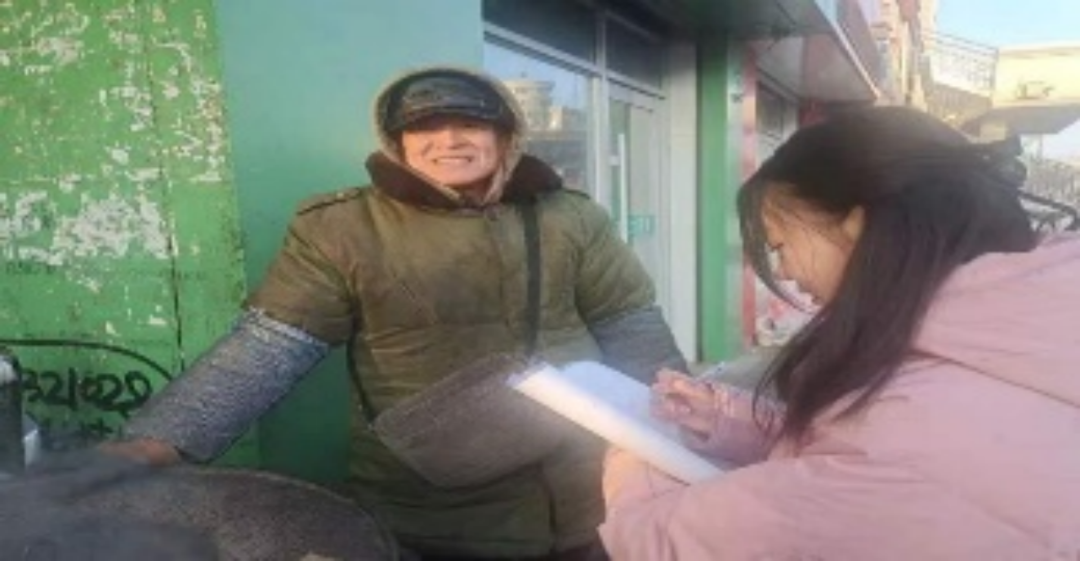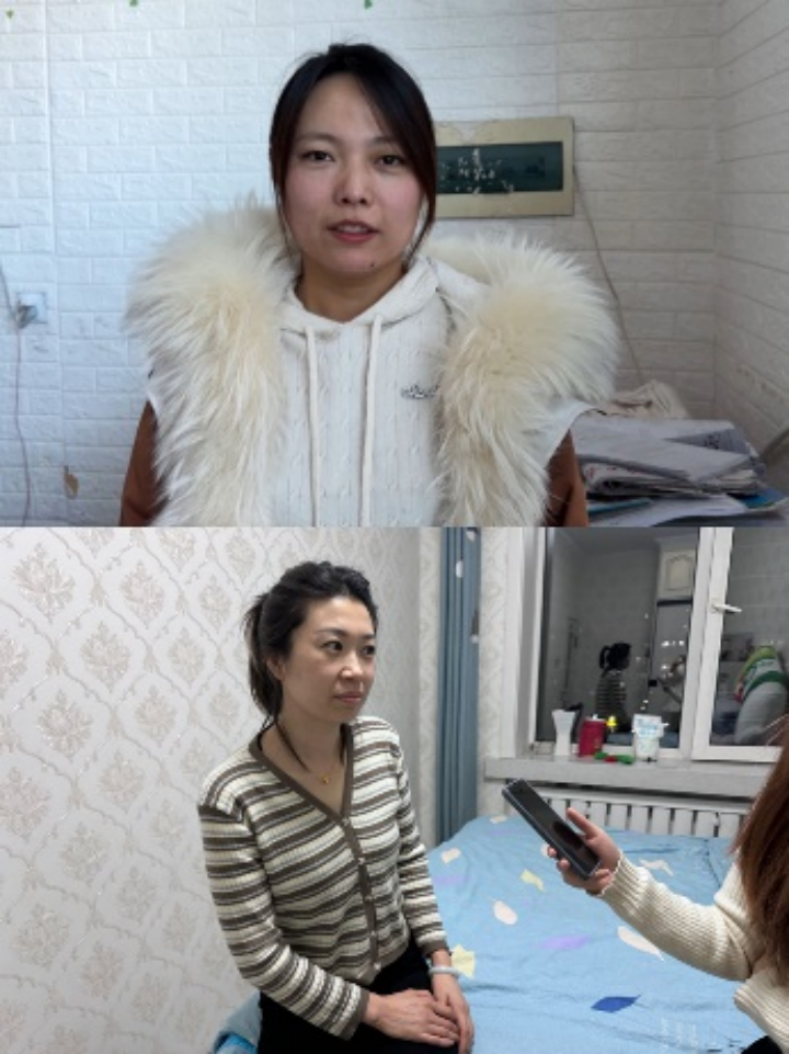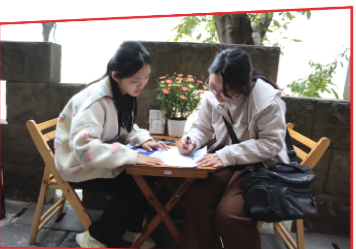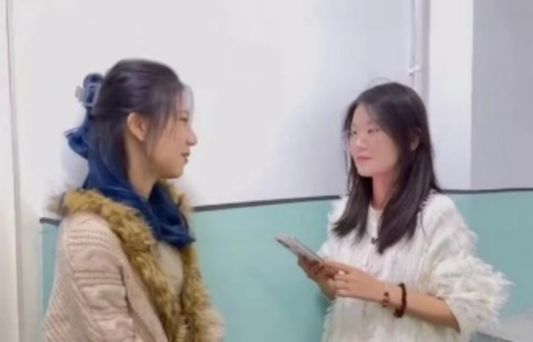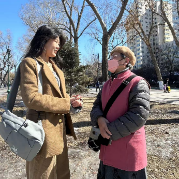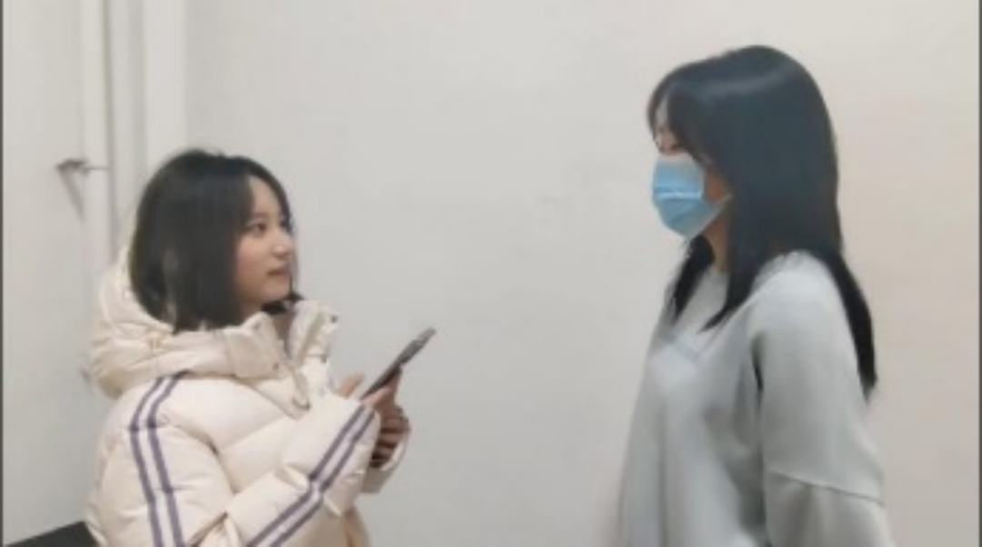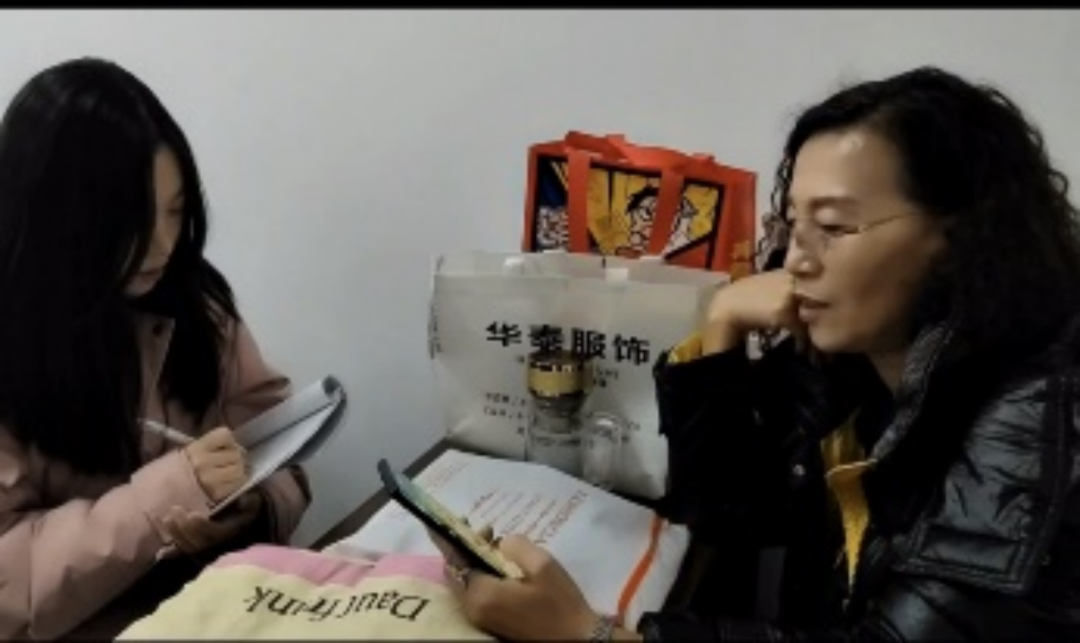 魏润琪、葛羽萌正在对当代老员工的性观念与婚姻观的联系与区别进行调查