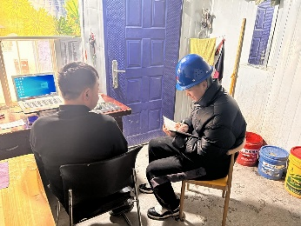 张瑞、李璐正在进行老员工返乡就业意愿调查