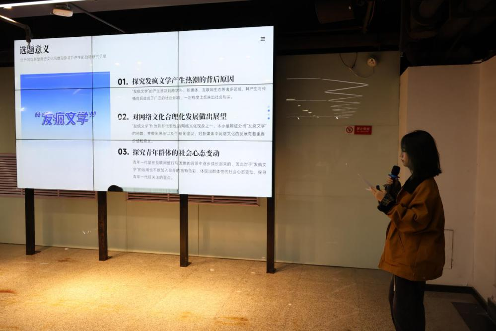 钟慕珍、徐佳明、安思蒙小组深入探寻女性之声,他们精心设计线上问卷,聆听女性对“女性优先”等议题的深度思考与真挚情感。走进女性生活,面对面交流,让调研过程更接地气,内容更情感化。在马海龙的智媒时代媒介素养调查中,他深入华北城乡,记录媒介素养概况,发现智能化媒体改变生活,媒介素养水平参差不齐,但计算机通识知识在提升媒介素养方面作用显著。易捷、郑钿葳、路琼达小组则深入研究“东北文艺复兴”议题,探索文化新闻传播之道,他们细心聆听读者的声音,挖掘观点的情绪价值。而赵烁的调查则聚焦于媒介化交往中的“糊弄行为”,揭示其动因与实践效果,反思媒介技术对社会交往的影响。