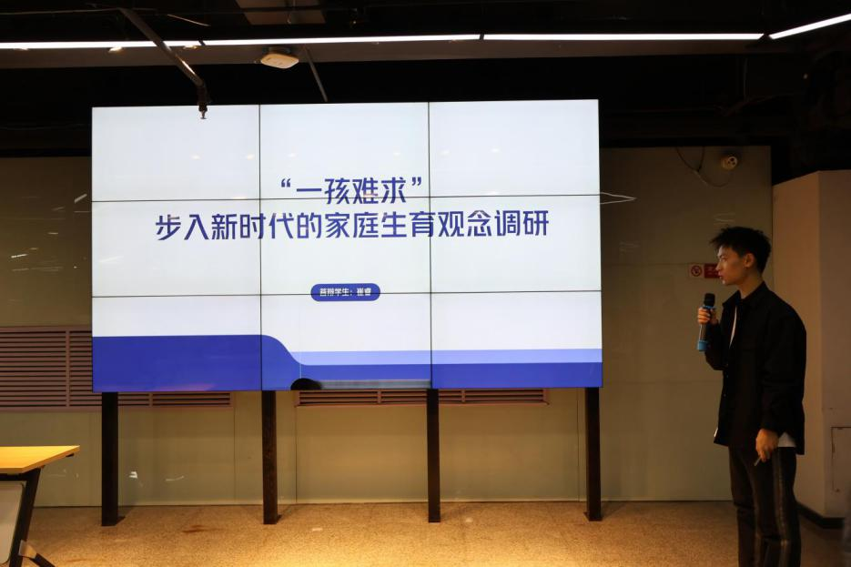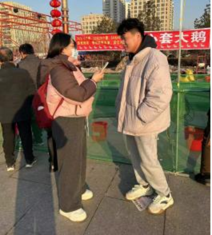 宋鑫、郭晓艺、崔睿正在对新时代的家庭生育观念进行调研