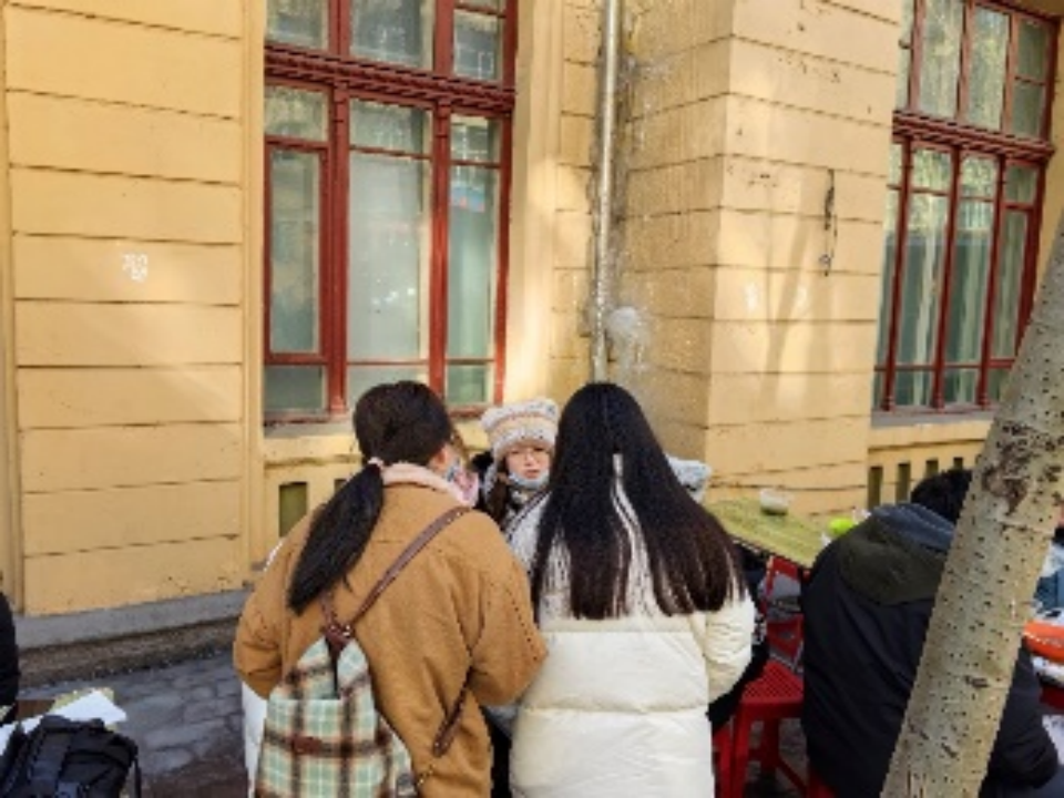 赵雅楠、何佳佳、张源娇正在进行调查研究